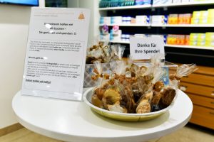 Das Team der Apotheke „zur Mariazeller Muttergottes“ backt heuer in der Vorweihnachtszeit Kekse und bietet diese für eine Spende an. Mit diesem Geld helfen wir, unterstützt durch die Pfarre St. Leopold Donaufeld, einer Familie aus der Nachbarschaft in Not.